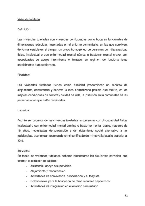 En todas las viviendas tuteladas deberán presentarse los siguientes servicios, que