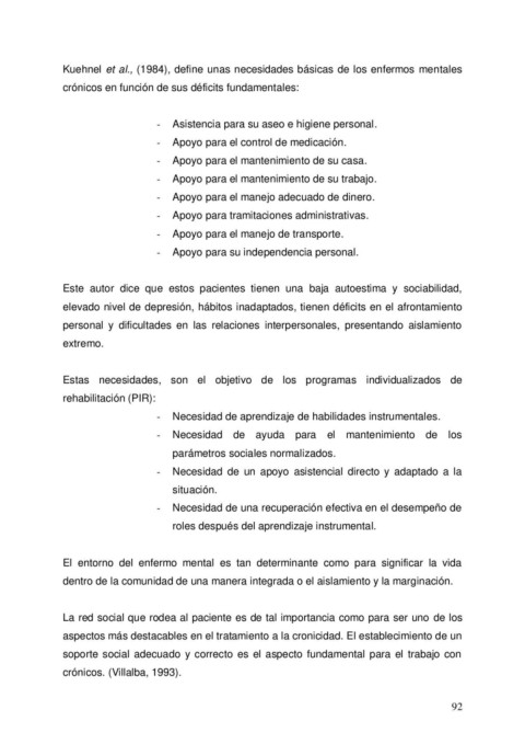 Kuehnel et al., (1984), define unas necesidades básicas de los enfermos mentales