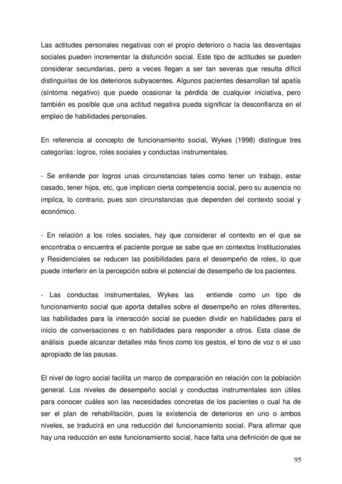 En referencia al concepto de funcionamiento social, Wykes (1998) distingue tres