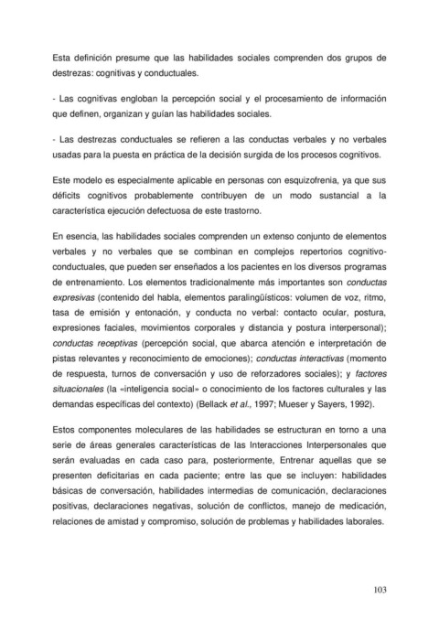demandas específicas del contexto) (Bellack et al., 1997; Mueser y Sayers, 1992).