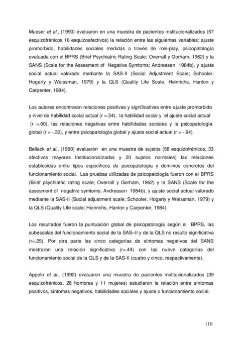 Bellack et al., (1990) evaluaron  en una muestra de sujetos (58 esquizofrénicos, 33