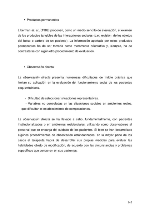 Liberman et. al., (1989) proponen, como un medio sencillo de evaluación, el examen