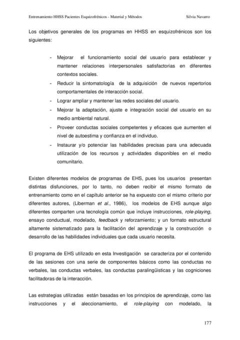 Entrenamiento HHSS Pacientes Esquizofrénicos - Material y Métodos Silvia Navarro