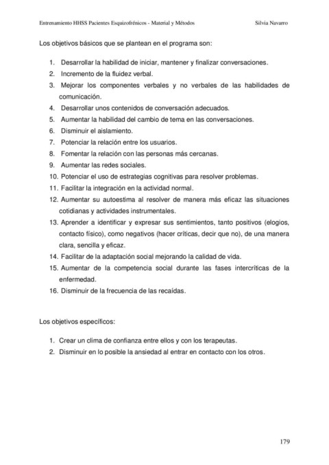 Entrenamiento HHSS Pacientes Esquizofrénicos - Material y Métodos Silvia Navarro