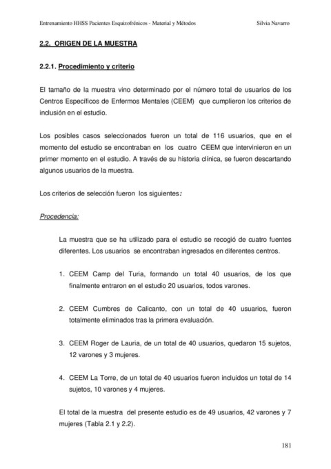 Entrenamiento HHSS Pacientes Esquizofrénicos - Material y Métodos Silvia Navarro