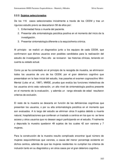 Entrenamiento HHSS Pacientes Esquizofrénicos - Material y Métodos Silvia Navarro