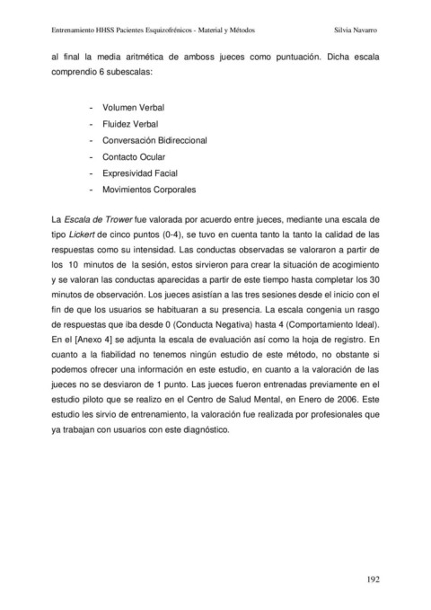 Entrenamiento HHSS Pacientes Esquizofrénicos - Material y Métodos Silvia Navarro