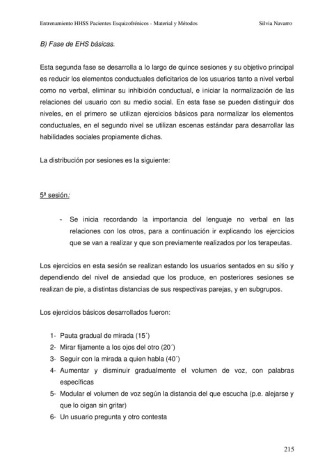 Entrenamiento HHSS Pacientes Esquizofrénicos - Material y Métodos Silvia Navarro