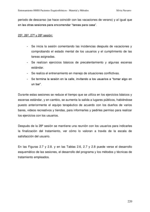 Entrenamiento HHSS Pacientes Esquizofrénicos - Material y Métodos                                            Silvia Navarro