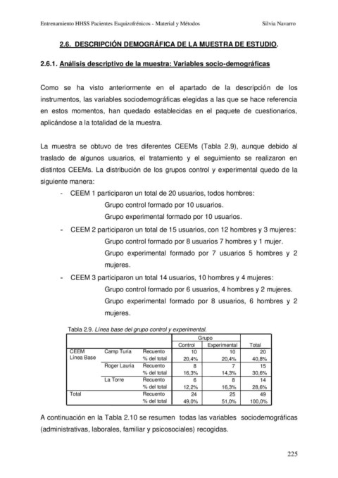 Entrenamiento HHSS Pacientes Esquizofrénicos - Material y Métodos Silvia Navarro