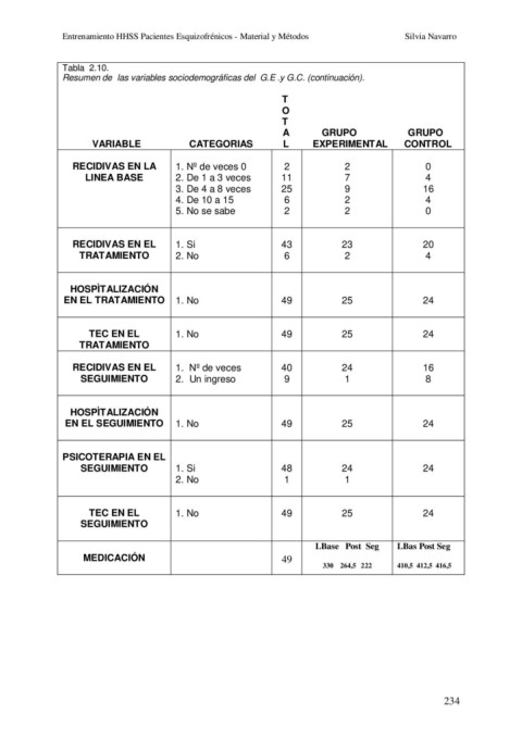 Entrenamiento HHSS Pacientes Esquizofrénicos - Material y Métodos Silvia Navarro