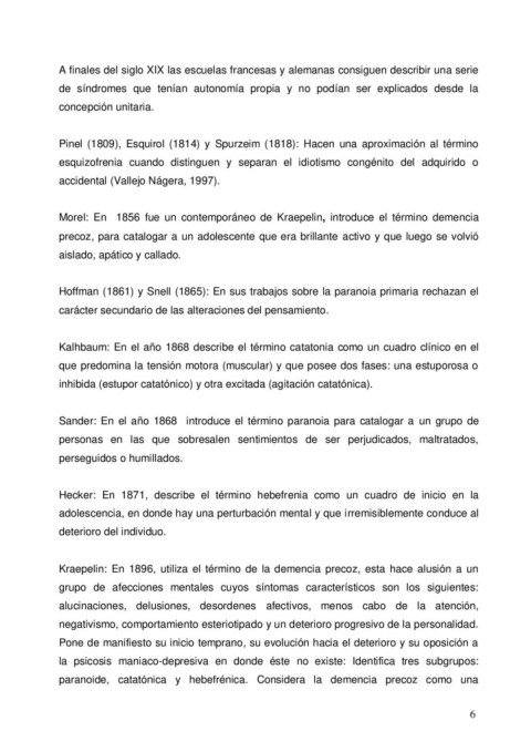 Kraepelin: En 1896, utiliza el término de la demencia precoz, esta hace alusión a un