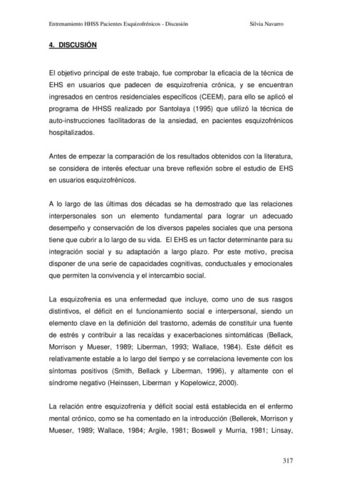Entrenamiento HHSS Pacientes Esquizofrénicos - Discusión Silvia Navarro