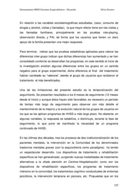 Entrenamiento HHSS Pacientes Esquizofrénicos - Discusión Silvia Navarro