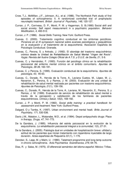 Entrenamiento HHSS Pacientes Esquizofrénicos - Bibliografia Silvia Navarro