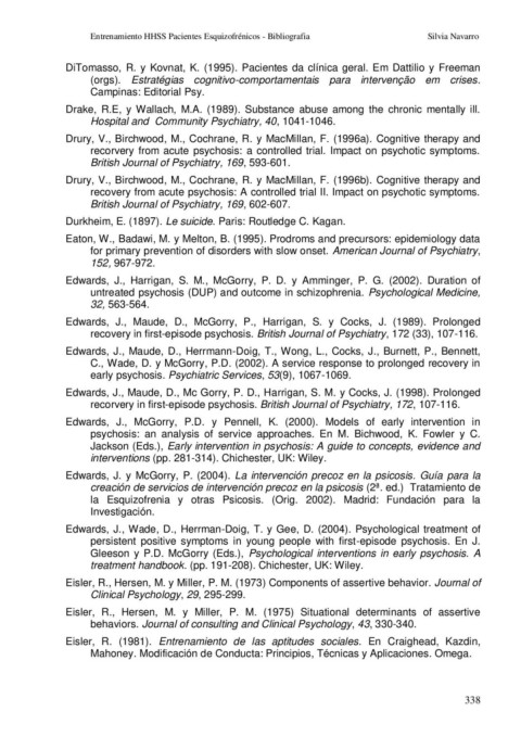 Entrenamiento HHSS Pacientes Esquizofrénicos - Bibliografia Silvia Navarro