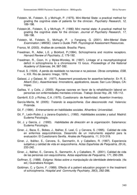 Entrenamiento HHSS Pacientes Esquizofrénicos - Bibliografia Silvia Navarro