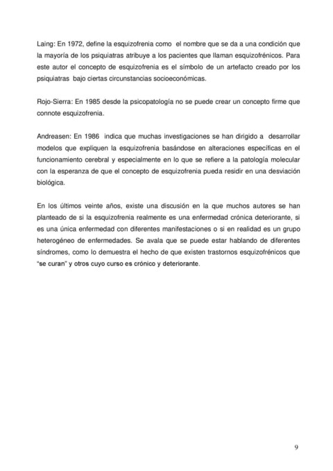 Laing: En 1972, define la esquizofrenia como el nombre que se da a una condición que