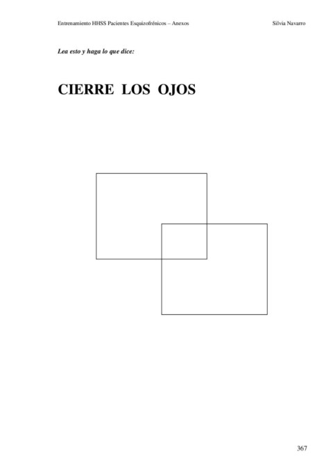 Entrenamiento HHSS Pacientes Esquizofrénicos – Anexos Silvia Navarro Lea esto y haga lo que dice: CIERRE LOS OJOS 367