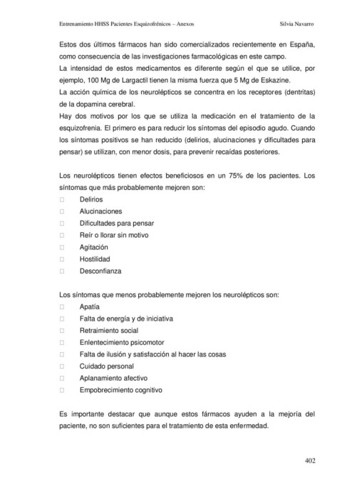 Entrenamiento HHSS Pacientes Esquizofrénicos – Anexos Silvia Navarro
