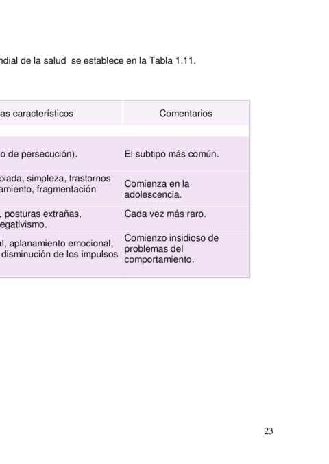 La clasificación diagnóstica de la CIE-10 de la organización mundial de la salud se establece en la Tabla 1.11.