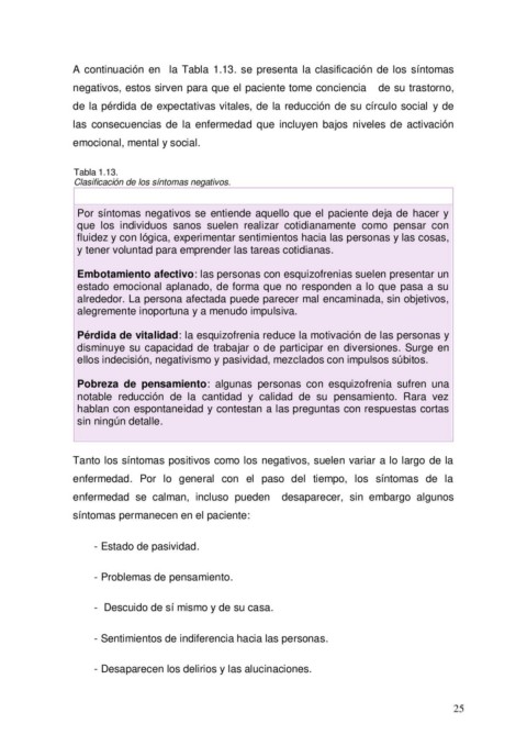 A continuación en la Tabla 1.13. se presenta la clasificación de los síntomas