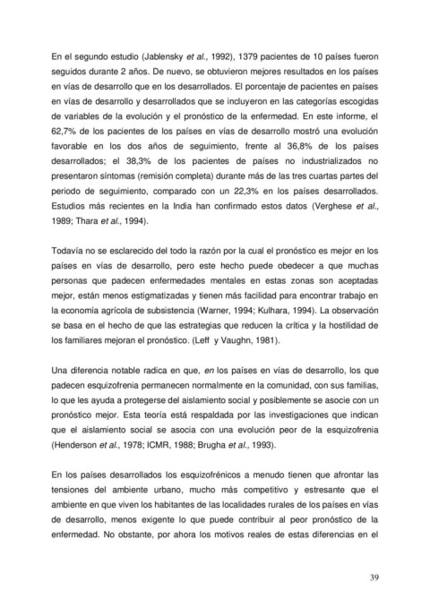 En el segundo estudio (Jablensky et al., 1992), 1379 pacientes de 10 países fueron