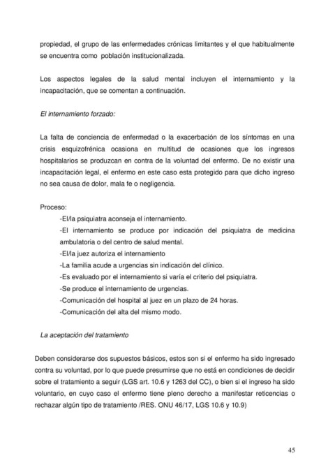 Los  aspectos  legales  de  la  salud  mental  incluyen  el  internamiento  y  la