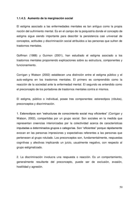 auto-estigma en los trastornos mentales. El primero es comprendido como la